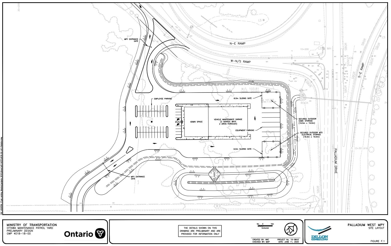 - Constructing a “Limited Use Supporting MPY” at MTO-owned lands referred to as Palladium West. This site is located near the highway north of the Connections community in Stittsville. This MPY would include office space, storage, and occasional maintenance of MPY vehicles.