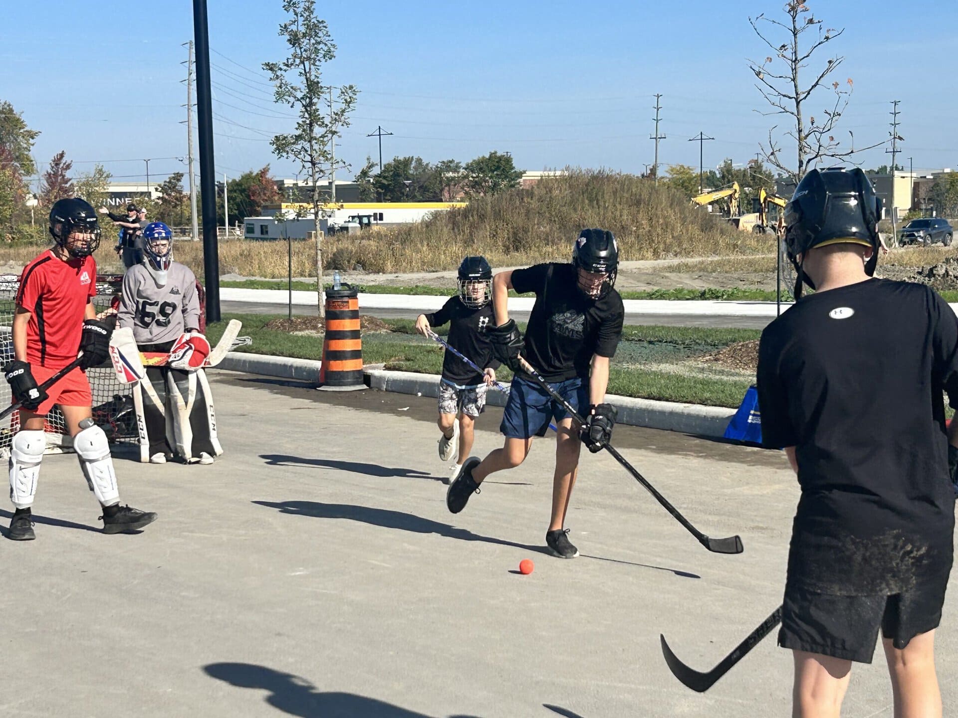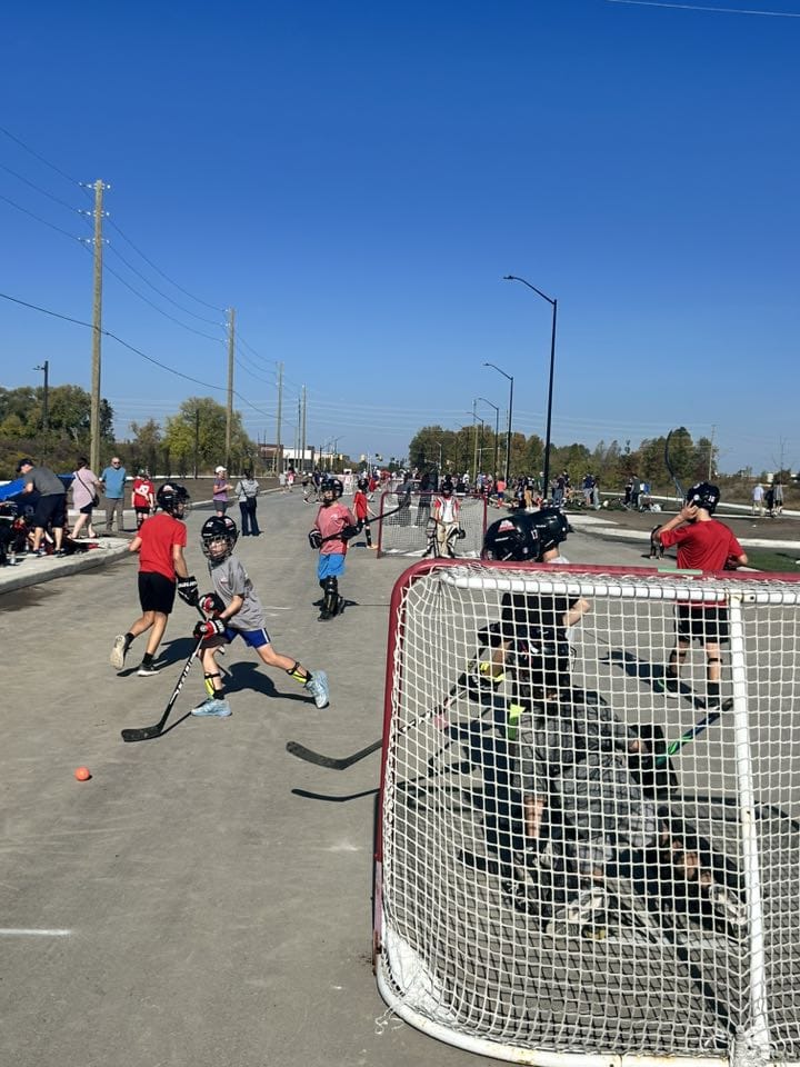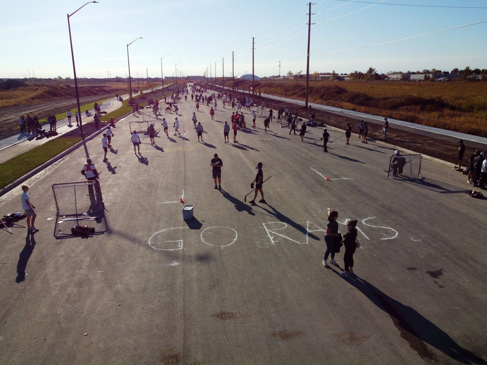 Le matin, près de 200 joueurs de hockey ont participé à un tournoi de hockey-balle et à une collecte de fonds organisés par l’Association de hockey mineur de Stittsville. Puis, dans l’après-midi, quelques centaines de résidents se sont joints à nous pour faire du vélo, marcher et courir le long du tronçon de 1,5 kilomètre de la route. Nous avons vu des cyclistes, des joggeurs, des patineurs à roulettes, des planchistes, des personnes promenant leur chien, et plus encore.