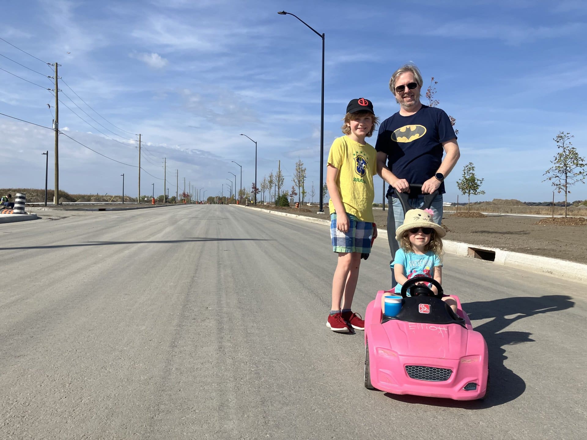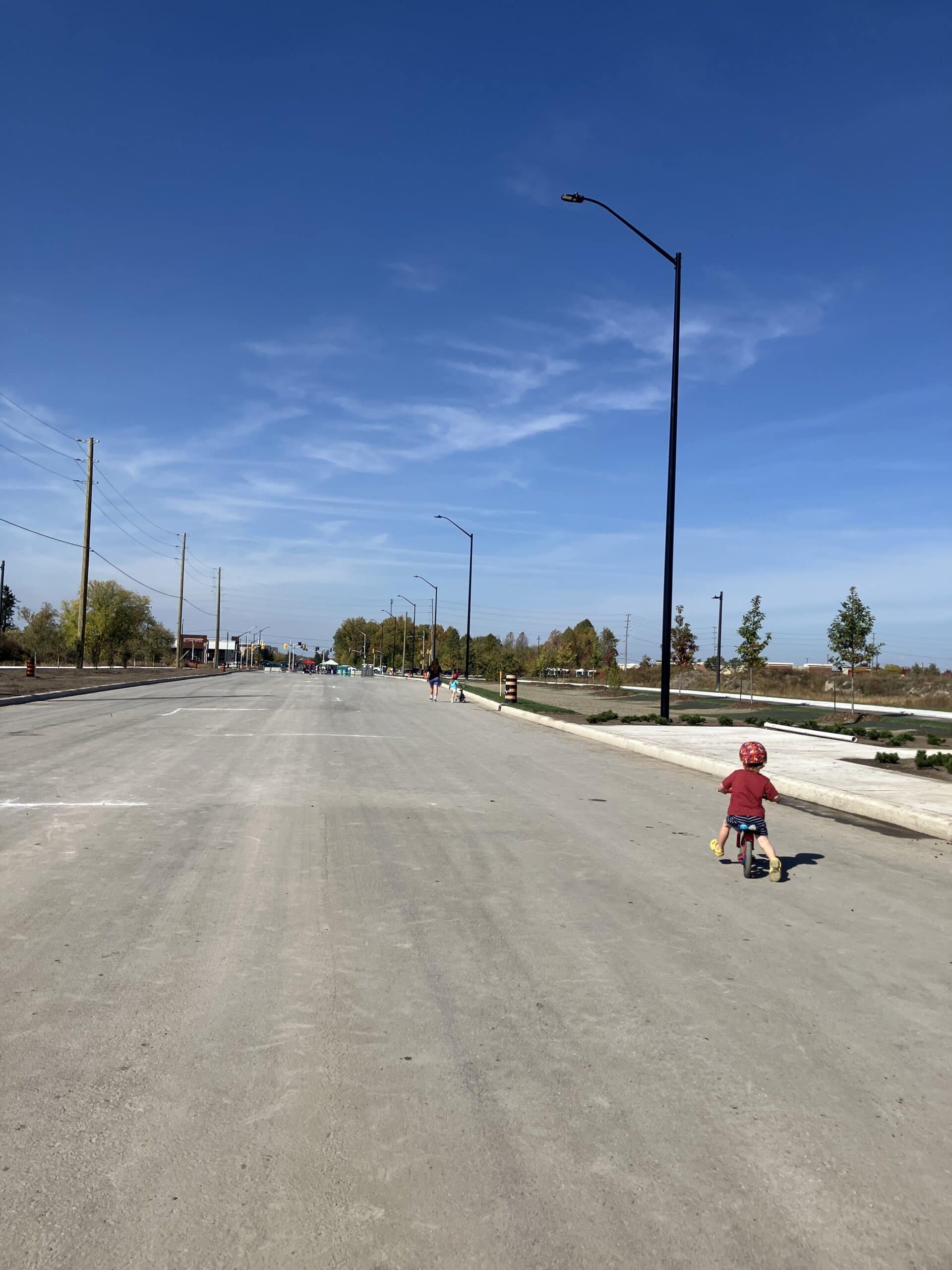 In the morning, nearly 200 hockey players took part in a ball hockey tournament and fundraiser organized by the Stittsville Minor Hockey Association. Then in the afternoon, a few hundred residents joined us to ride, roll, walk, and run along the 1.5-kilometre stretch of the road. We saw cyclists, joggers, rollerbladers, skateboarders, dog walkers, and more.