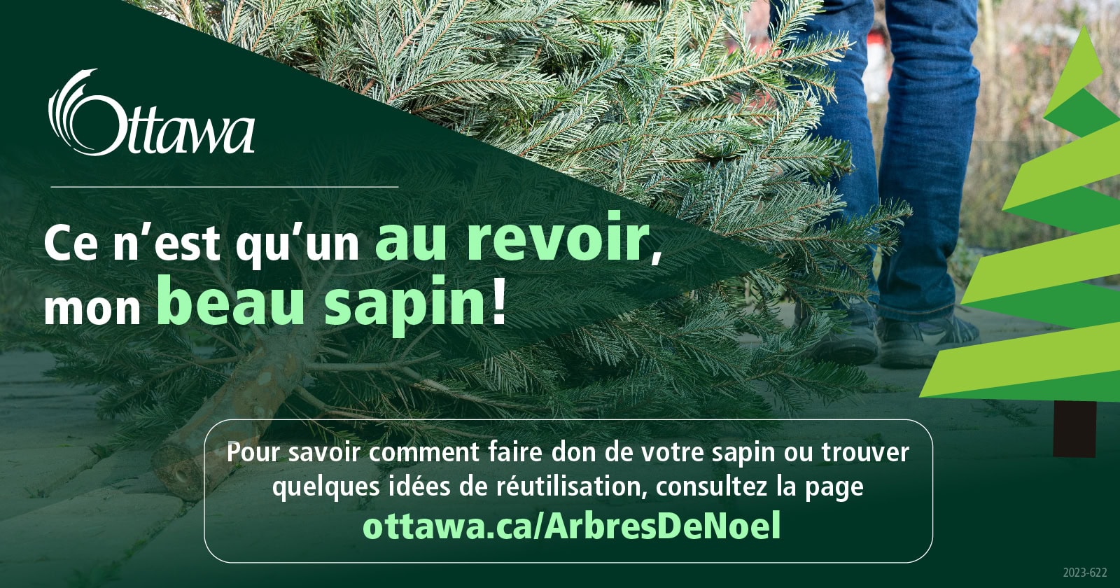 Again this year, when it comes time for residents to take down their real tree, we are encouraging them to consider reuse or donate options. We have various options outlined on our website at Ottawa.ca/ChristmasTrees, including: