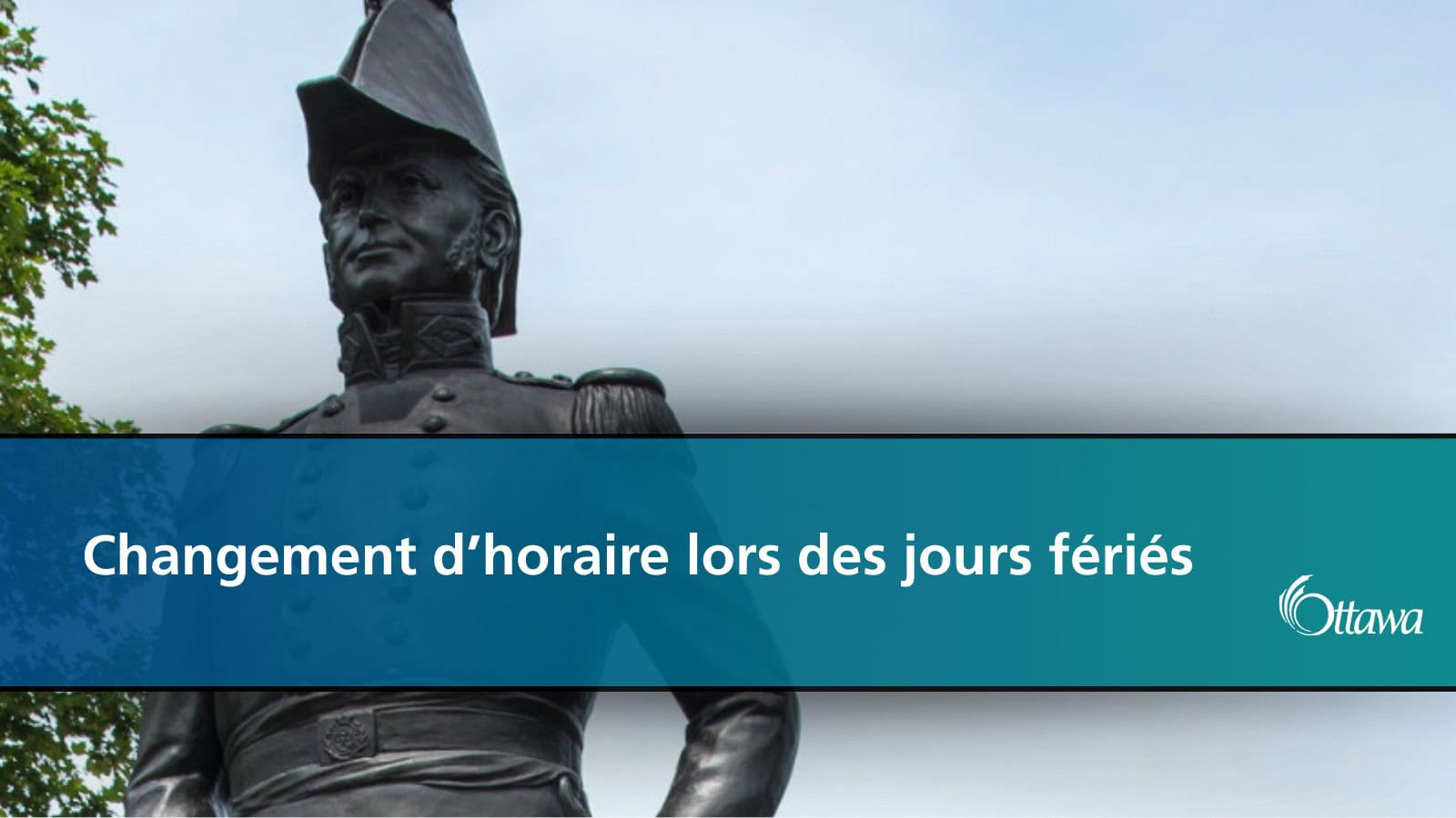 La Ville d’Ottawa aimerait rappeler aux résidentes et résidents les modifications suivantes de l’horaire et les répercussions sur les services municipaux lors du congé pour la Journée du Colonel By, le lundi 4 août.