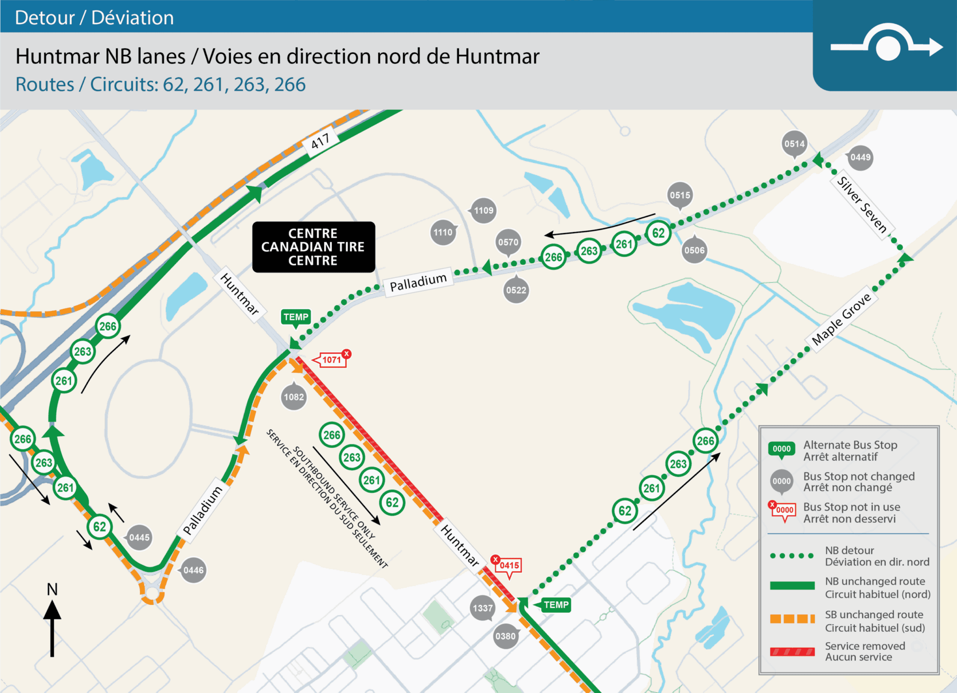 From 6:00 am on Sunday, November 16, until 5:00 pm on Wednesday, November 26, the routes will detour around the closure along Maple Grove Road, Silver Seven Road, and Palladium Drive. Please allow extra time for your travels. More info at octranspo.com…