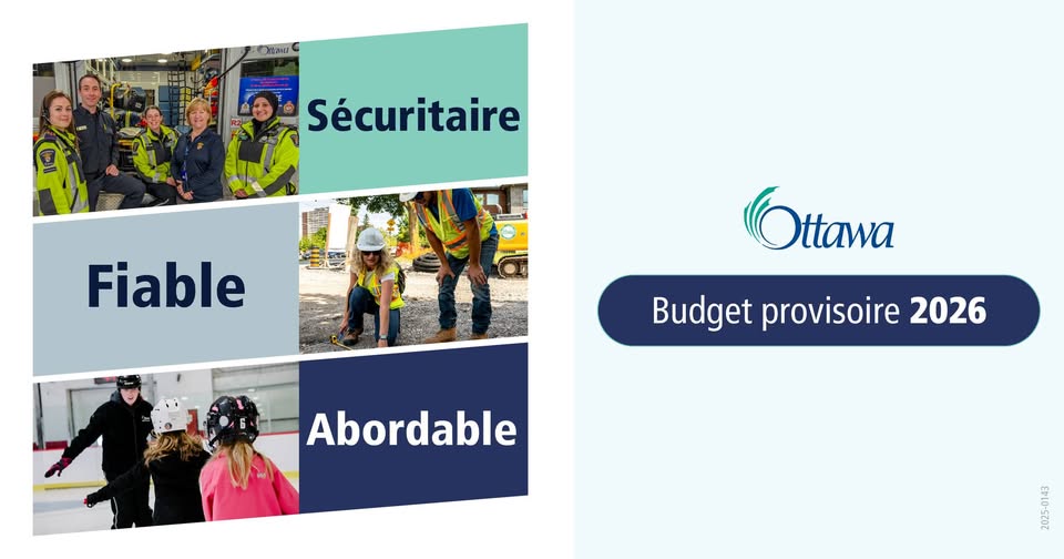 Le budget provisoire de 2026 d’Ottawa, qui a été déposé aujourd’hui au Conseil municipal, investit dans les services sur lesquels les résidents et les résidentes comptent au quotidien et dans les priorités clés qui font d’Ottawa une ville sécuritaire, fiable et abordable. Le budget provisoire de 2026 propose un budget de fonctionnement de 5,2 milliards de dollars et un budget des immobilisations de 1,9 milliard de dollars. Voici certains des investissements prioritaires clés :