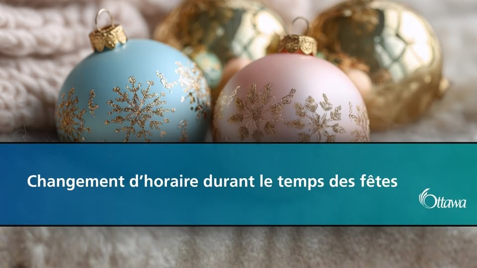 La Ville d’Ottawa tient à rappeler aux résidents que les changements suivants s’appliqueront aux horaires pour la période des Fêtes, soit du mercredi 24 décembre au vendredi 2 janvier.