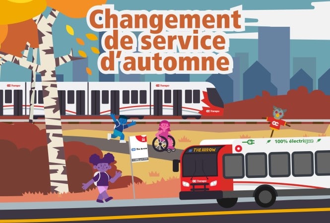 Le service automnal d’OC Transpo commence le dimanche 24 août. Le service d’automne comprend des modifications saisonnières du service et le retour du service scolaire, un nouveau circuit desservant l’Aéroport international d’Ottawa, des ajustements supplémentaires du service et des ajustements en raison de travaux de construction.