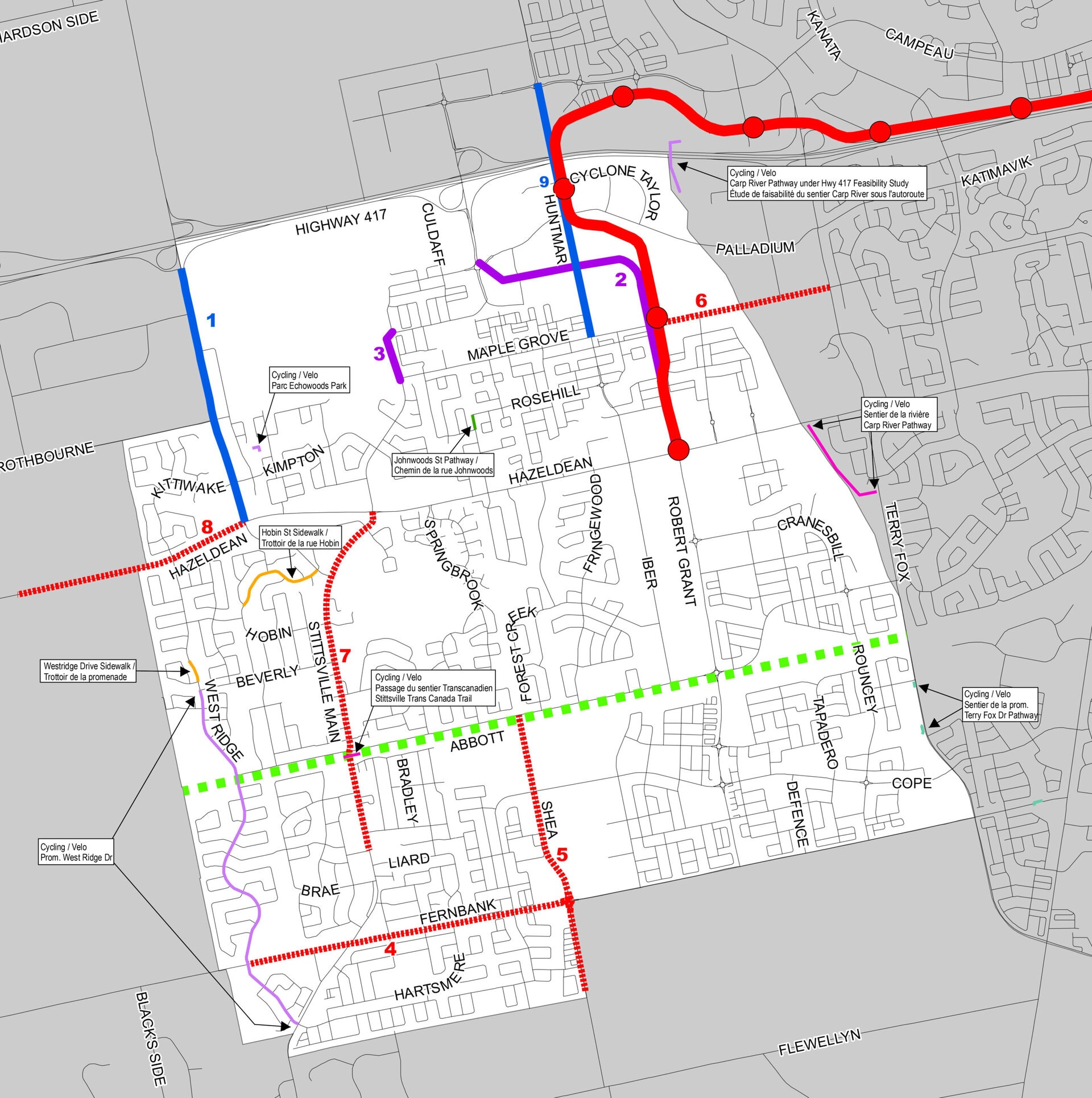- Cycling connection across Stittsville Main St for the Trans Canada Trail and other improved connections to the Trans Canada Trail (timing to be determined)