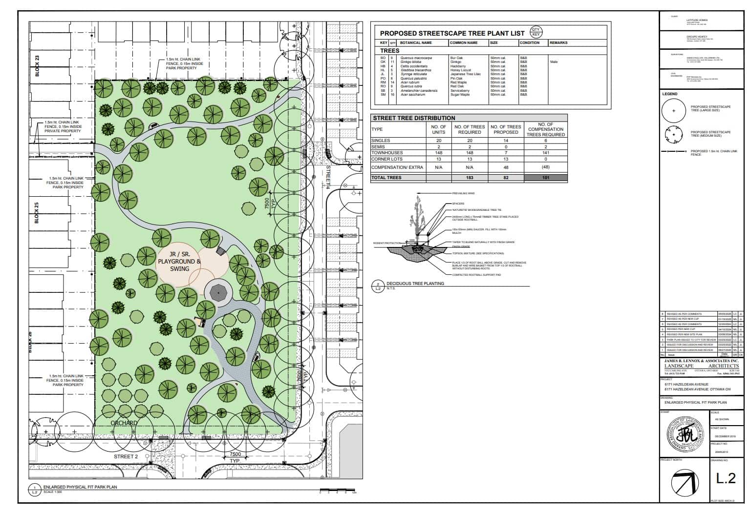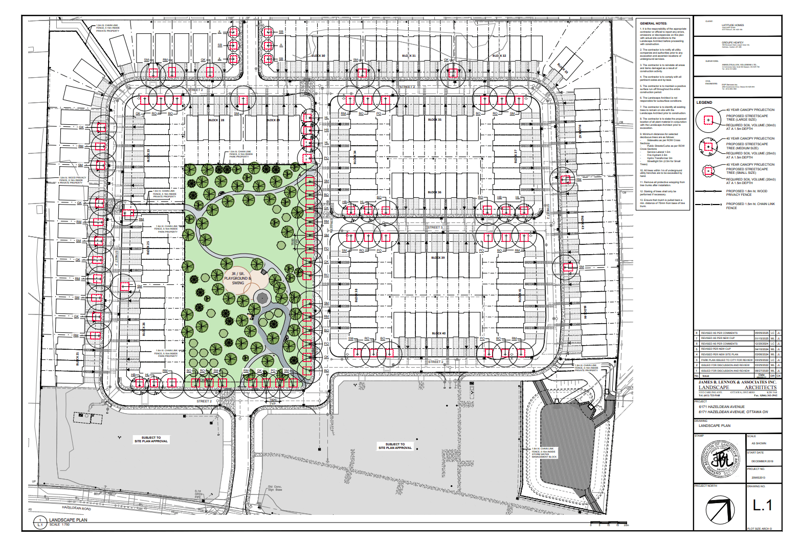 - Abattage d’arbres : veuillez consulter la dernière version du plan d’aménagement paysager ci-dessous.