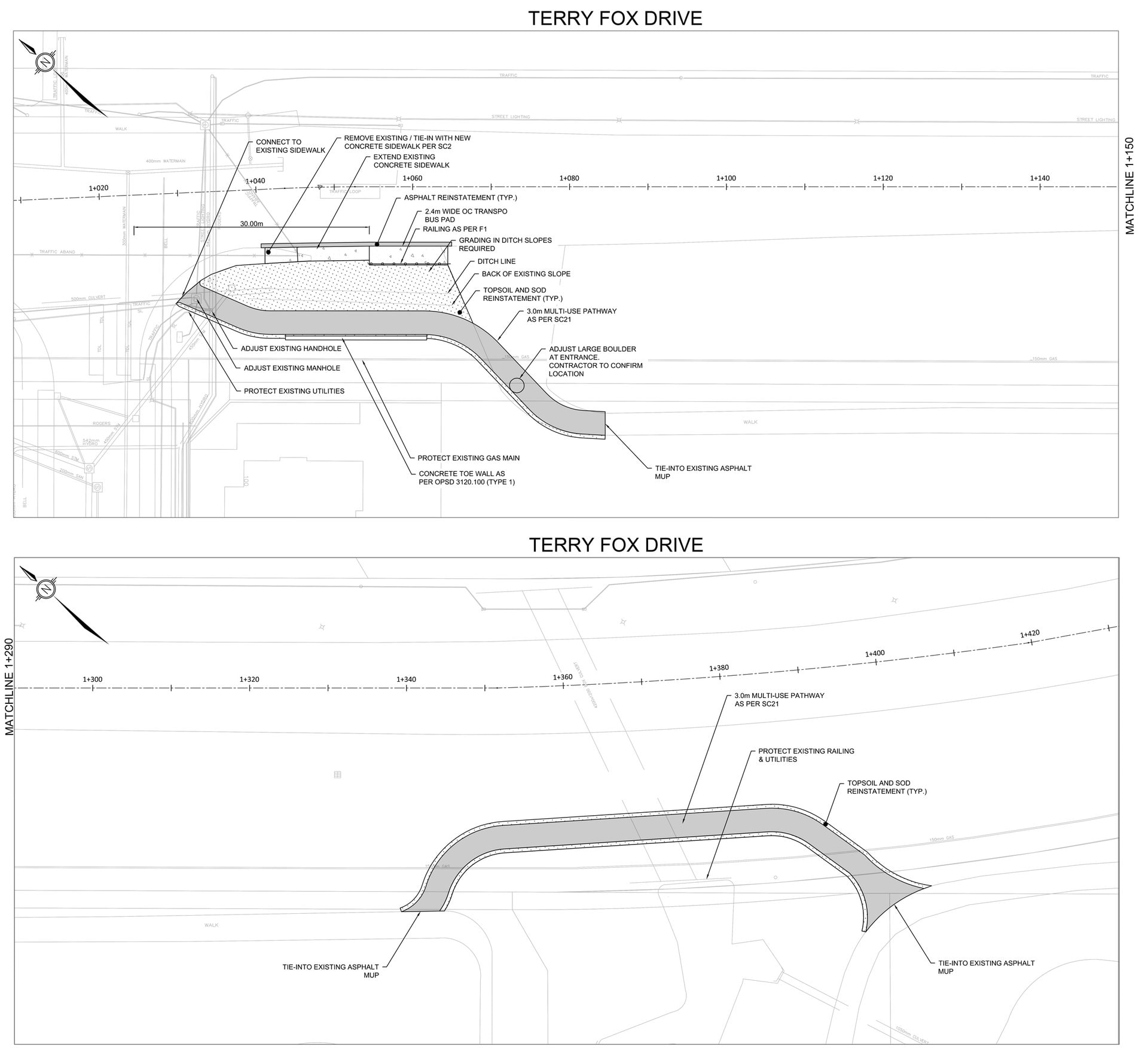 - New multi-use pathway connections along Terry Fox Drive between Westphalian Avenue and Cope Drive (to provide a continuous multi-use pathway link)