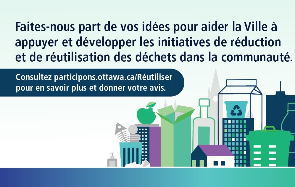 Pour obtenir de plus amples renseignements à ce sujet et répondre au sondage en ligne, consultez le site : participons.ottawa.ca/réutiliser. Vous avez jusqu’au 7 juillet pour répondre au sondage.